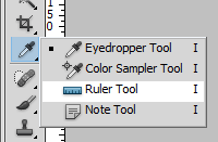 Now select the Ruler Tool from your toolbar. In recent versions, it shares a spot with the Eyedropper Tool: