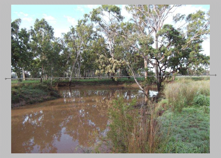 Draw a line along the horizon (or any other desirable horizontal or vertical line):