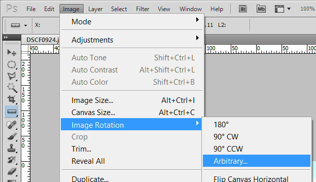 Then choose Arbitrary rotation from the Image menu: