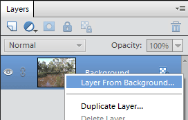 First, right-click on the Background layer and choose "Layer from Background":