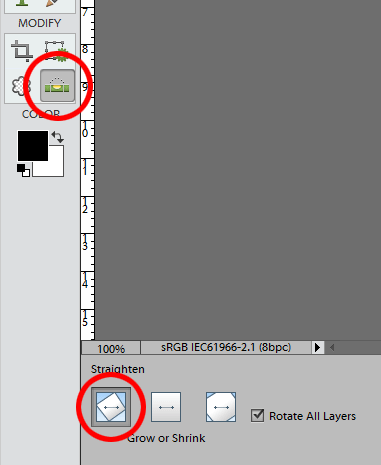 Choose the Straighten Tool in the toolbar, and make sure it’s set to "Grow or Shrink" in the Options Bar, if your version has that option: