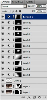 Then I hid the second layer, and got up close and personal to mask the first layer more precisely: