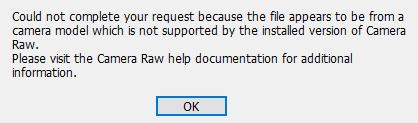 That dreaded message: "Could not complete your request because the file appears to be from a camera model which is not supported by the installed version of Camera Raw."