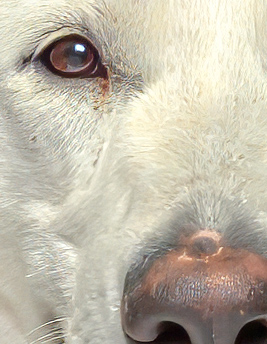 - On the third one, it's a different dog. The eye shape is too different, the nose marking is different, the whiskers are different. Again, I'm not blaming the Topaz program for this, remember. Its job is to imagine detail where no detail exists, and it does this exactly as well as any human could do - that is, not at all well.